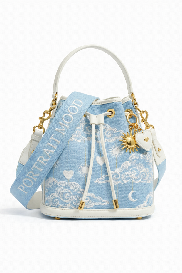 The Céleste Collection is the physical manifestation of a storm that has finally passed. When you take hold of the rigid, structured top handle, you will feel the uncompromising power of your own foundation. But where your hand rests, it meets the fluid, sky-bound silk of the Céleste cloud print. A daily reminder to breathe.