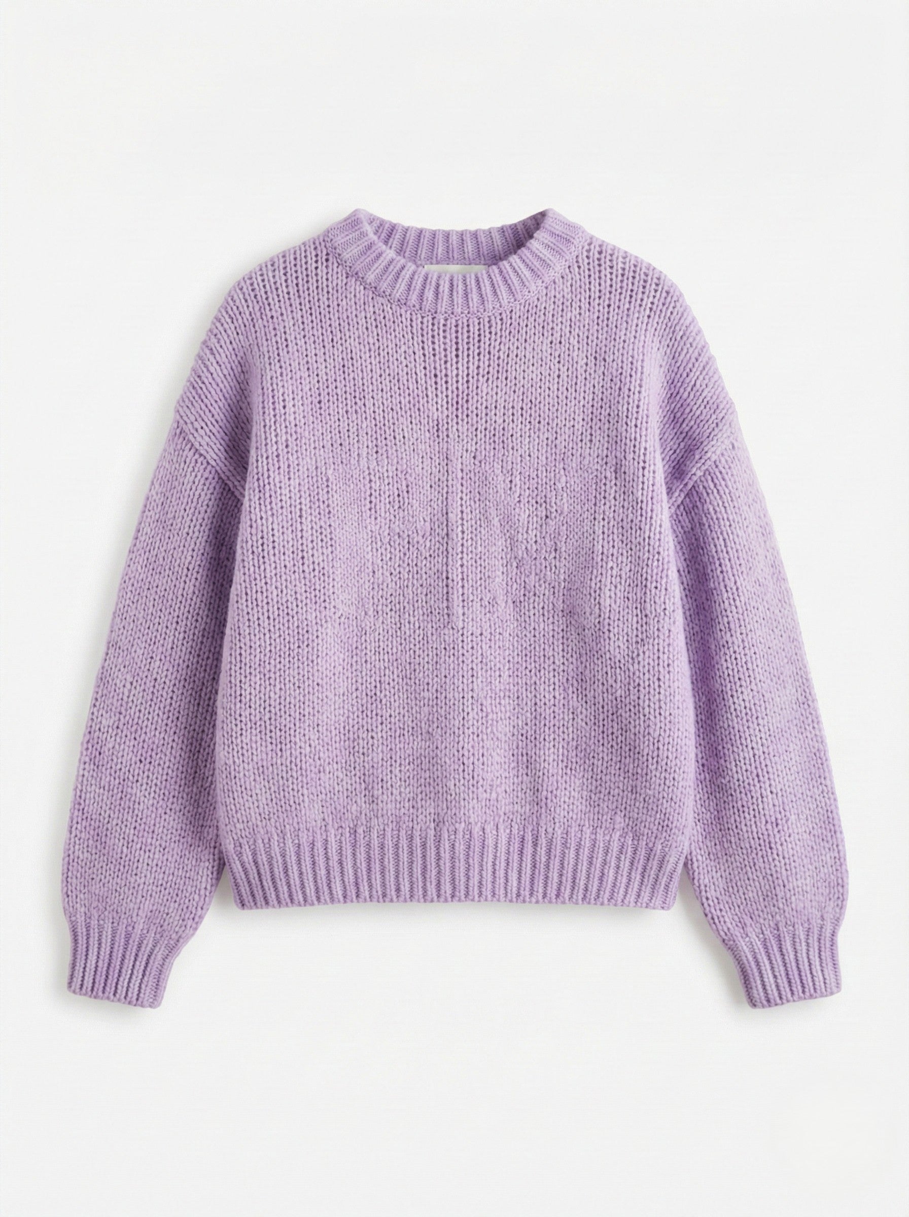 Tactile serenity. The PM Lavender Haze Knit softens the edges of modern luxury with its ethereal texture and calming palette. Crafted from a premium, brushed mohair-alpaca blend, this crewneck offers a cloud-like hand feel that is as comforting as it is chic. The gentle lilac canvas is subtly disrupted by our signature 'PM' monogram, engineered into the knit with a relief technique that reveals itself through light and shadow. Finished with soft, substantial ribbed trims to maintain a structured silhouette, it is a piece designed for moments of quiet confidence.