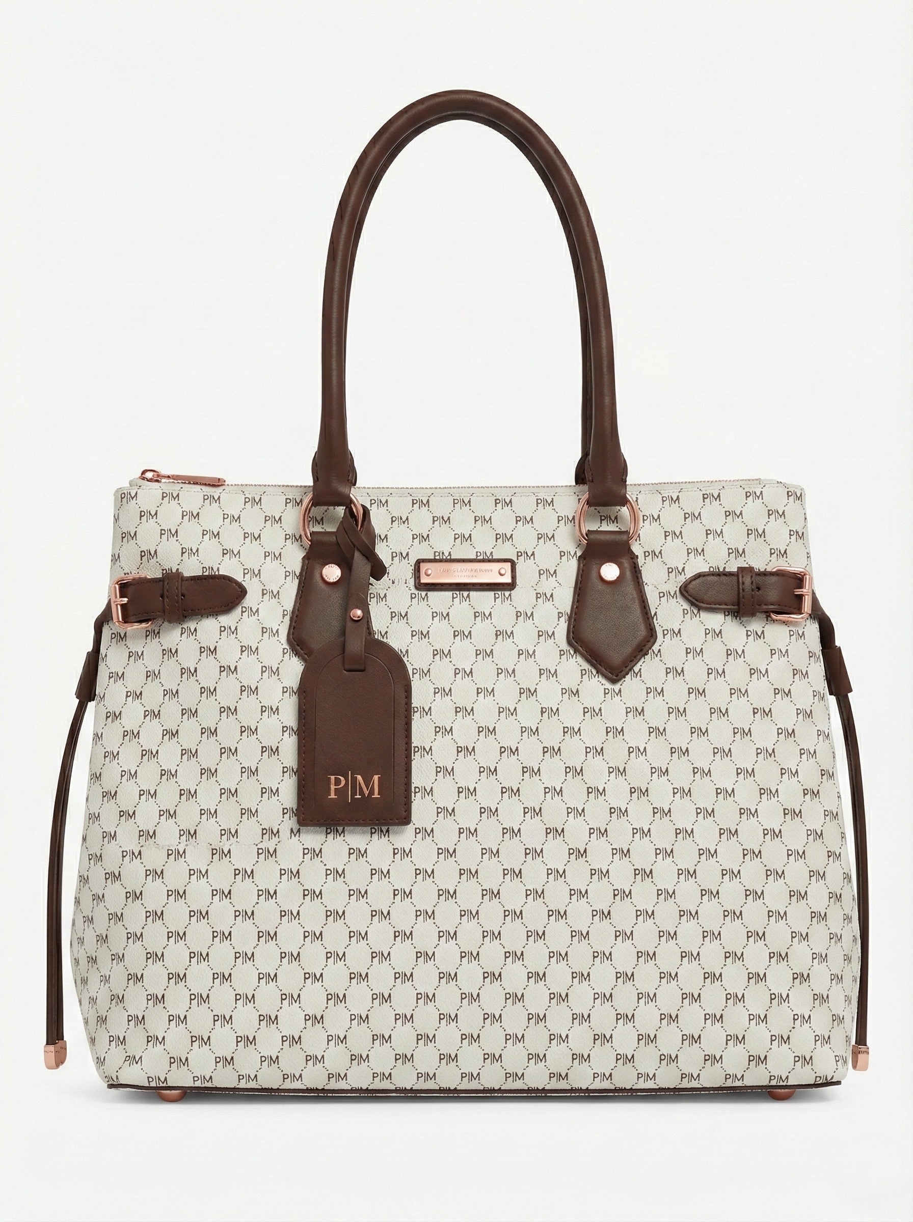 Crafted in the signature PM all-over monogram canvas, the tote is framed with rich chocolate brown leather trim, sculpted handles, and refined side-belt detailing that subtly nods to heritage craftsmanship. The silhouette is architectural yet soft enough to move with you — from boardroom to travel lounge, from weekday command to weekend refinement.