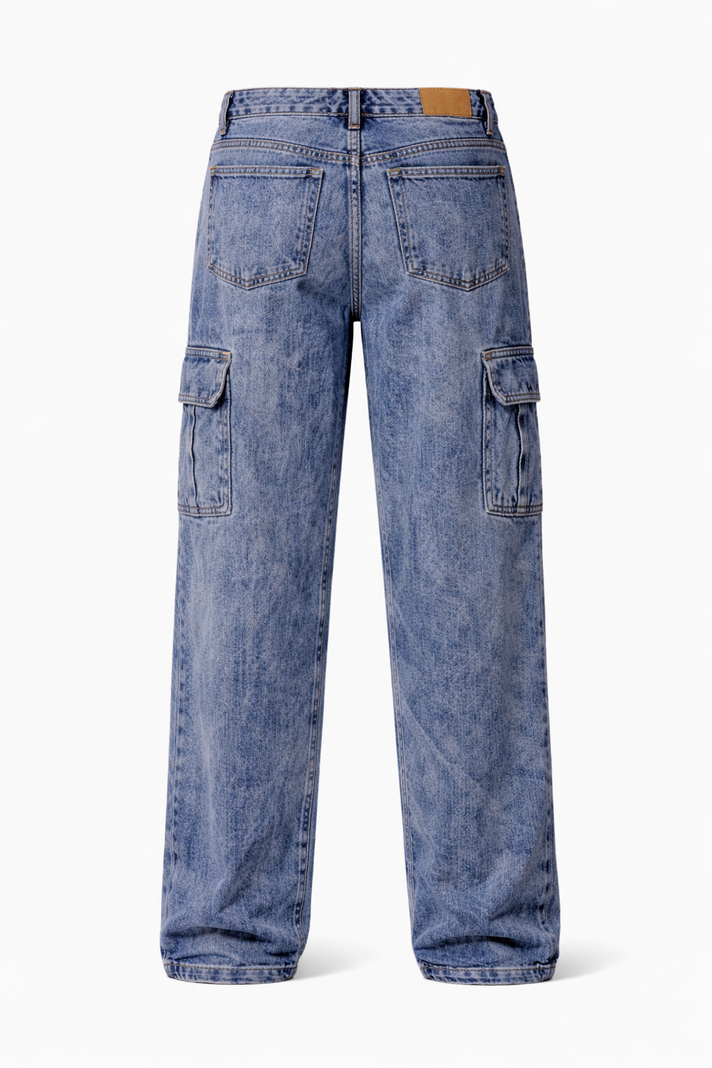The uniform of the urban architect. The PM Vintage Utility Cargo Denim merges the rugged durability of workwear with the refined drape of luxury tailoring. Expertly crafted from premium heavyweight cotton denim, the garment features a meticulously engineered 'Vintage Indigo' stone wash that delivers authentic highs and lows, mimicking years of natural wear. The silhouette is cut for a relaxed, architectural wide-leg fit that stacks effortlessly over footwear, providing a substantial, structured profile. Function meets identity on the thighs, where dual expanding cargo pockets offer utilitarian storage; the left pocket is sealed with the house's signature—a high-contrast black 'PIM' woven logo patch that acts as a seal of quality. Finished with classic contrast topstitching and premium metal hardware, it is a timeless anchor for the modern wardrobe.
