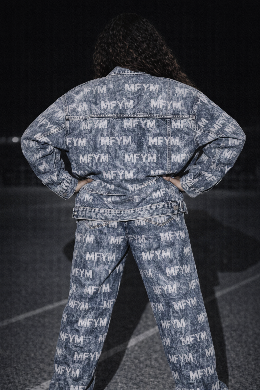 Pattern: All-over "MFYM" monogram integrated into the wash.