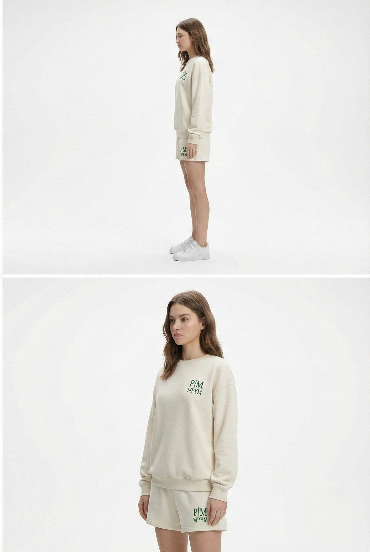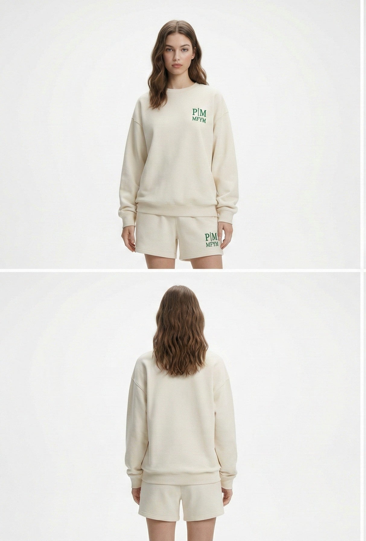 A premium ivory lounge set crafted from heavyweight brushed cotton, designed with a clean and structured fit.Both the sweatshirt and... Read more