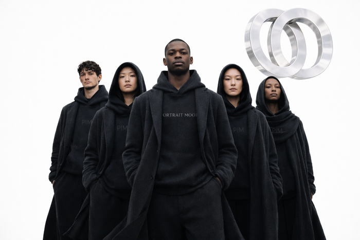The structure of comfort. The P|M 'Atelier' Leather-Pocket Hoodie elevates the humble sweatshirt into a piece of functional design. Crafted from heavyweight, loopback French terry in a soft, heathered 'Oatmeal' hue, the body offers a warm, organic drape that contrasts sharply with its defining feature. The traditional kangaroo pocket is replaced by a massive, structured cargo pouch crafted from smooth 'Noir' vegan leather. This architectural addition serves as both a utility element and a canvas for identity, with the house name 'PORTRAIT' deeply debossed into the leather surface—a subtle, tactile signature. Finished with a functional flap closure and premium gunmetal drawstring aglets, it is a garment designed for the creative who carries their studio with them."