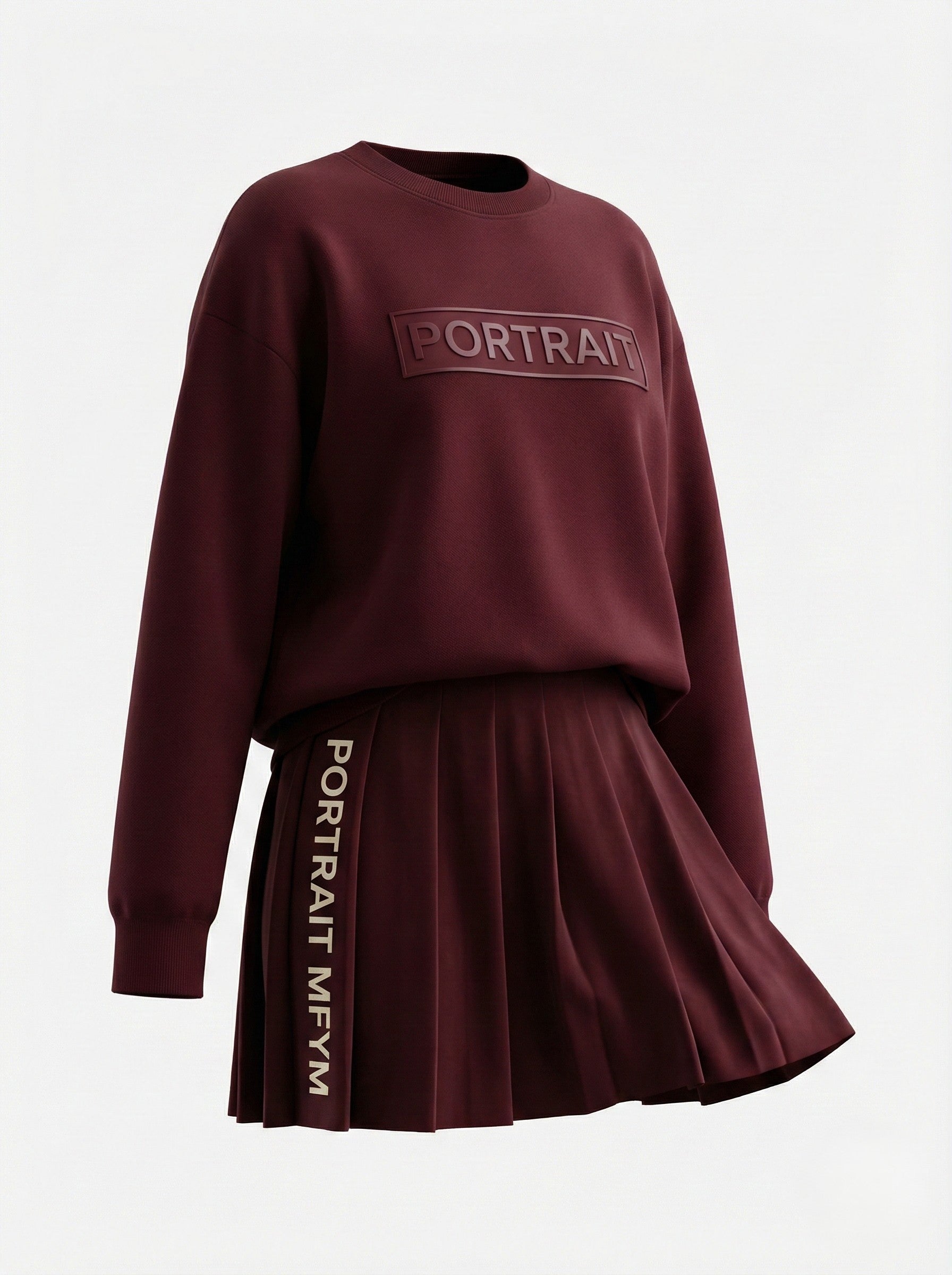 A rich, refined essential crafted in a deep burgundy hue. This elevated sweatshirt features our embossed PORTRAIT signature. Subtle, sculptural, and unmistakably premium. Soft on the skin with a structured, modern fit, it delivers quiet confidence and everyday luxury in one effortless piece.